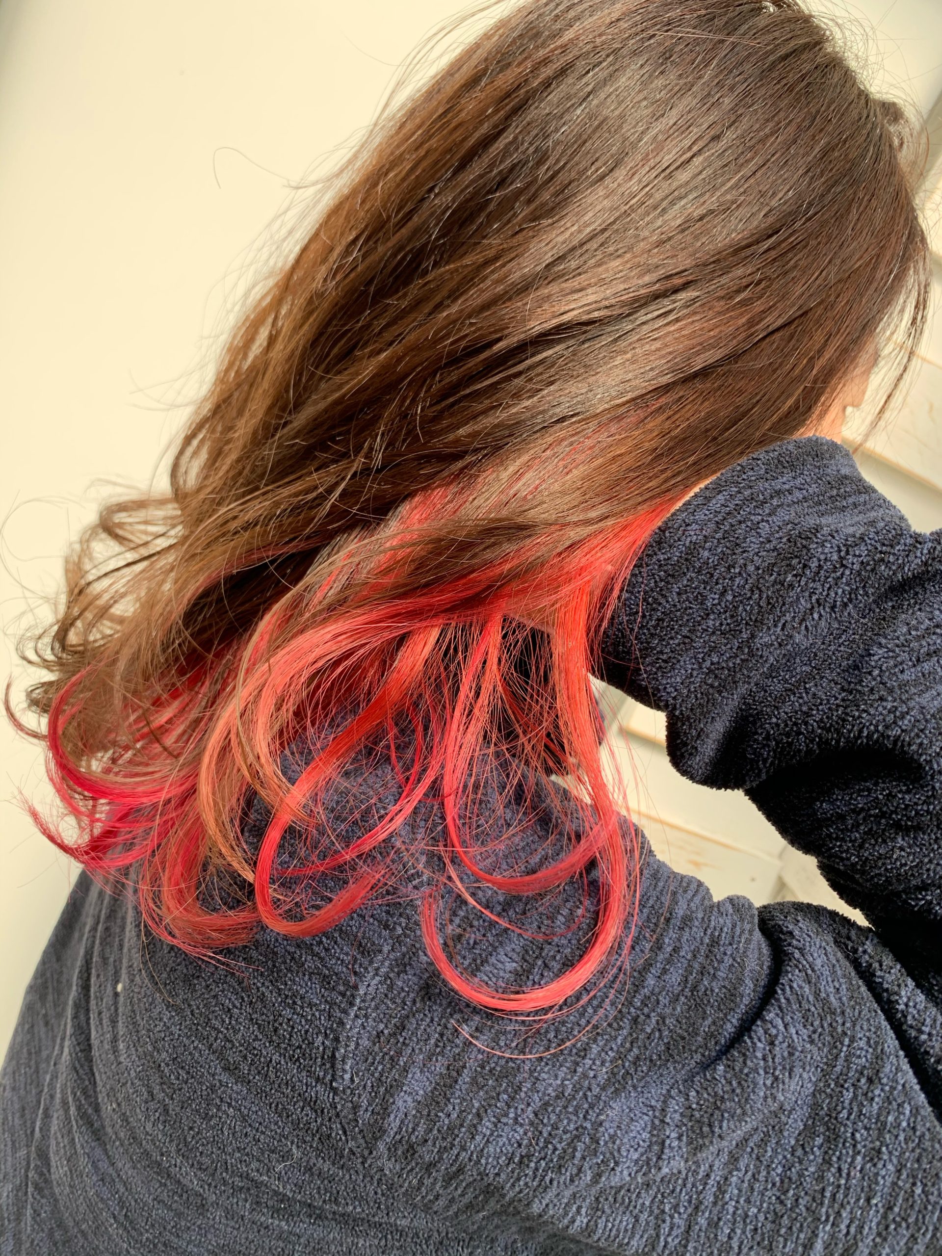 インナーカラーで写真映えするのがカラーバターを使って発色させることなのですがそこまで派手にしたくなくピンクや赤、青を入れたい方はカラー剤でもナチュラルに作り出せることができます!