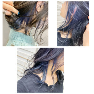 赤みを抑えるブルー系のインナーカラーは、透明感があってキレイな色合いを演出してくれます。