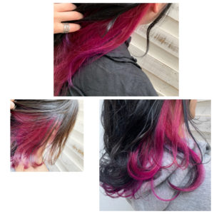 もう一つはカラーバターを使った派手ピンク!濃いお色味でもインナーカラーだからさりげなく仕上げることができる!